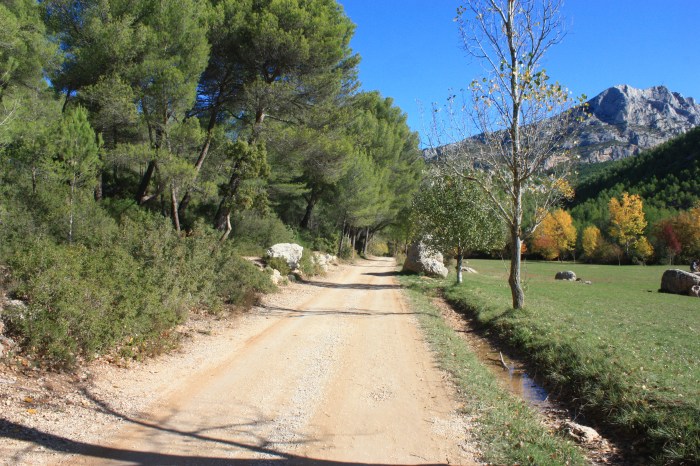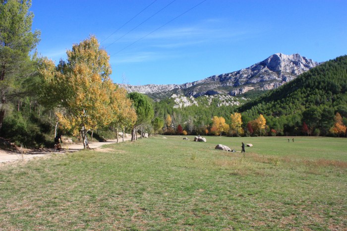 Le projet s’élance comme un linéaire : un point de départ marqué par le parking de l’Aurigon s’intégrant déjà relativement bien dans la pinède, un chemin longeant un cours d’eau permettant de randonner à la fraîcheur d’une belle strate arborée et enfin l’arrivée sur une grande prairie à l’Ouest de la Sainte-Victoire. Cette situation offre une vue spectaculaire sur un des éperons rocheux les plus emblématiques de Provence.