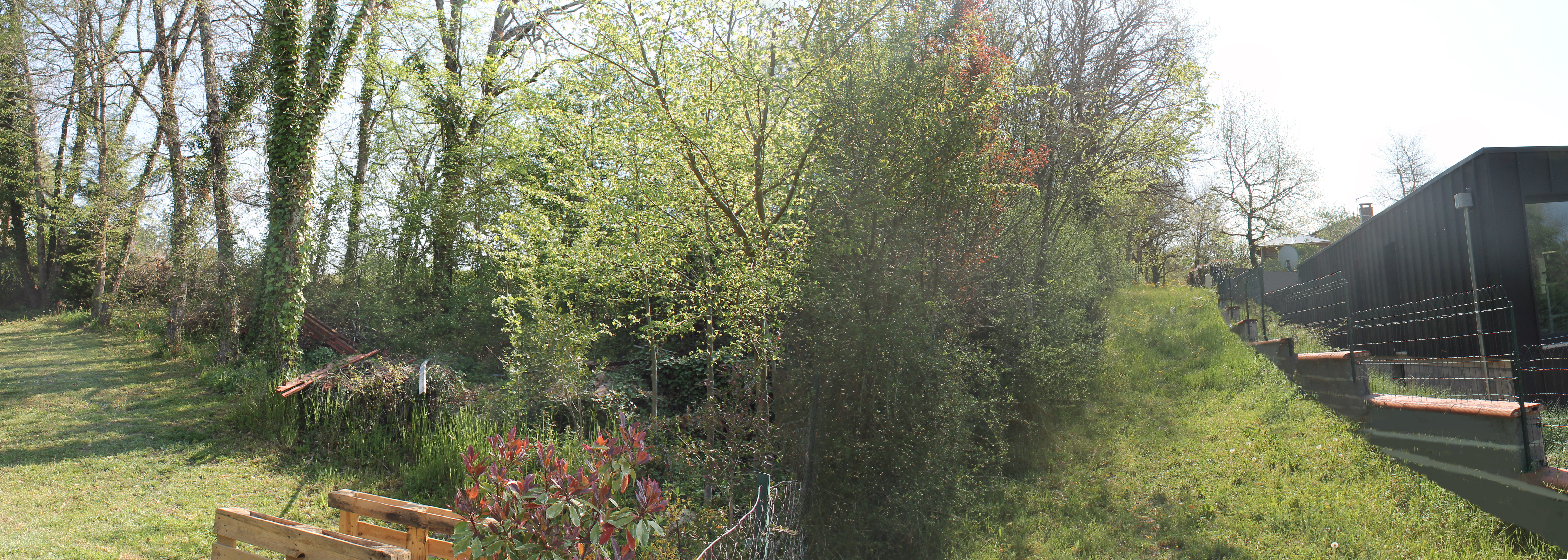 Le terrain bénéficie d’une vue dégagée sur l’ensemble du terrain, et notamment au loin sur le grand paysage collinaire et forestier des Causses du Quercy. De part et d’autres quelques haies champêtres discontinues viennent encadrer l’espace. Ces haies pourront être densifiées par les futurs acquéreurs pour se préserver des co-visibilités éventuelles, mais aussi pour favoriser les corridors de biodiversité que représentent les haies champêtres. En partie basse de la parcelle, un petit îlot boisé composé de Chênes blanc, d’Érables de Montpellier, devra être conservé et mis en valeur (notamment par taille et émondage (suppression des bois morts).
