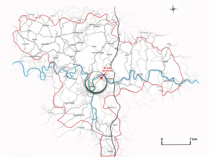 Le terrain est localisé sur la commune de Cahors. La parcelle en projet (AS 272/273) se trouve à la limite de Cahors, le long de la vallée du lot. Dans un secteur urbanisé de type résidentiel, la parcelle reste limitrophe avec des espaces de loisirs (stade), des commerces de proximité (boulangerie, banque….) mais également de grands groupes d’emplois comme notamment les laboratoires FABRE. Ce contexte traduis la légitimité de bâtir les deux parcelles en projet et offre un secteur de qualité, à la limite entre ville et nature, souvent prisé par les nouveaux acquéreur. L’habitat qui se développe dans le secteur est caractérisé par une architecture assez récente de type pavillon individuel.