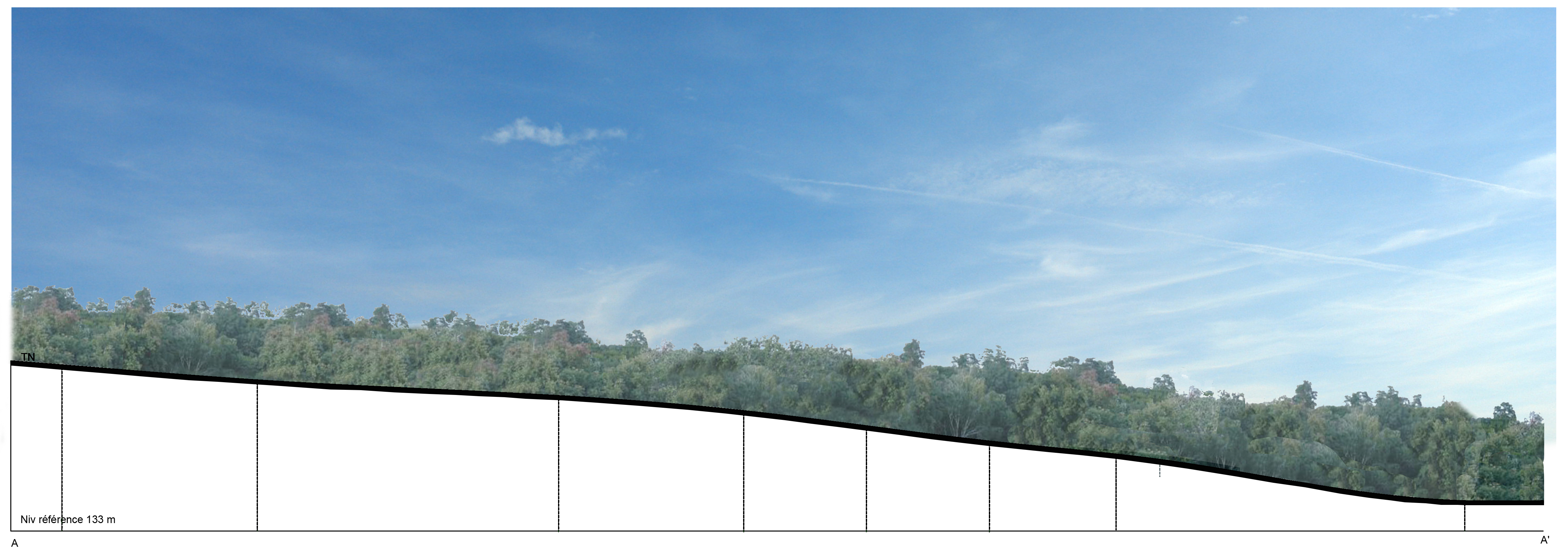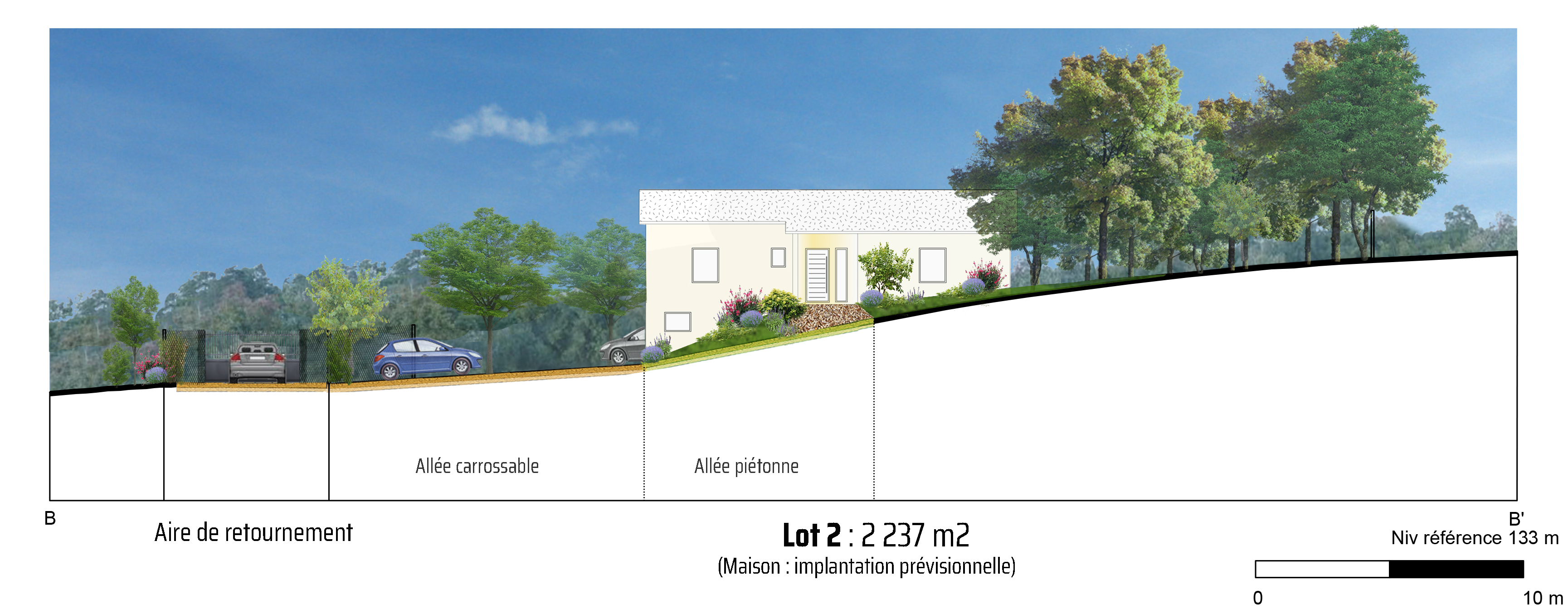 Coupe de principe d’aménagement du lot 2 (2237 m2).