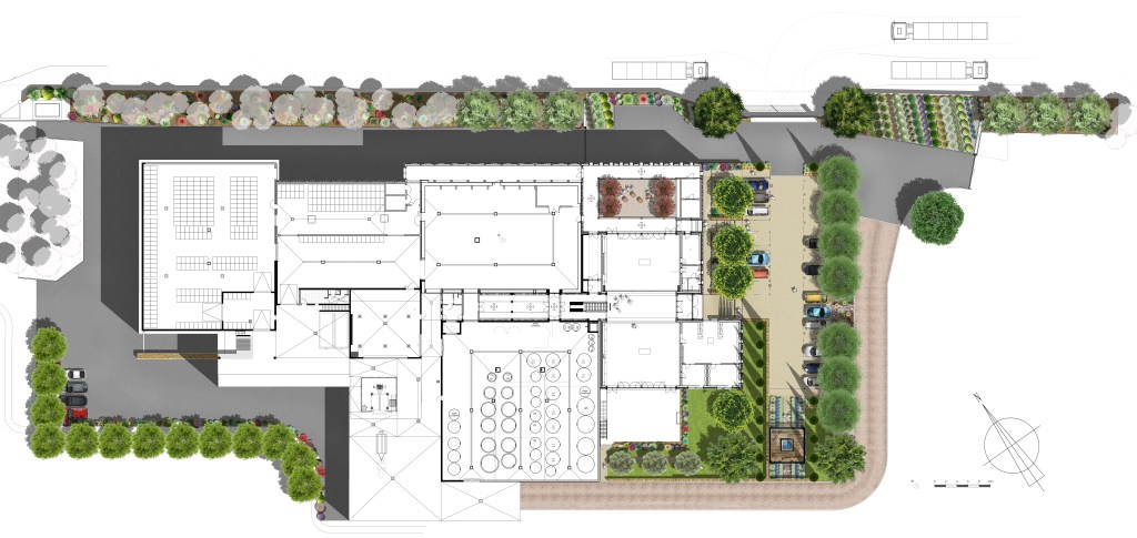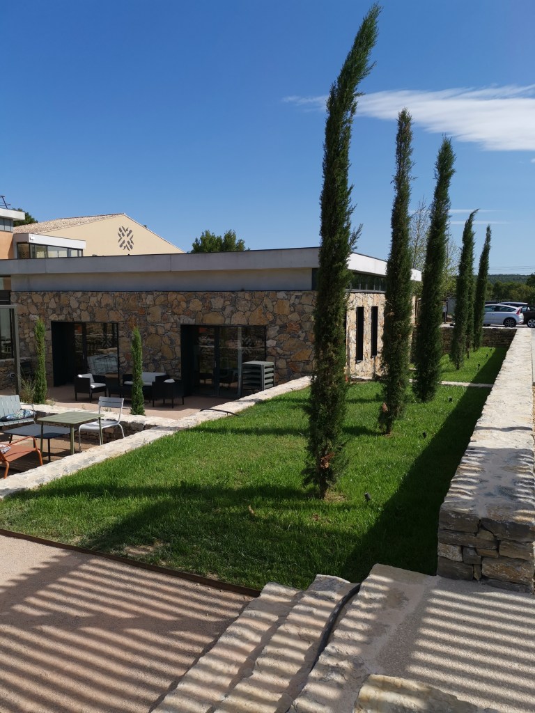 aménagements paysagers du caveau de vente et des espaces extérieurs.