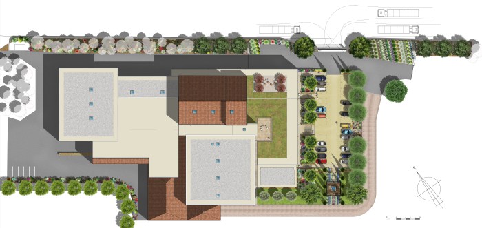 aménagements paysagers du caveau de vente et des espaces extérieurs.