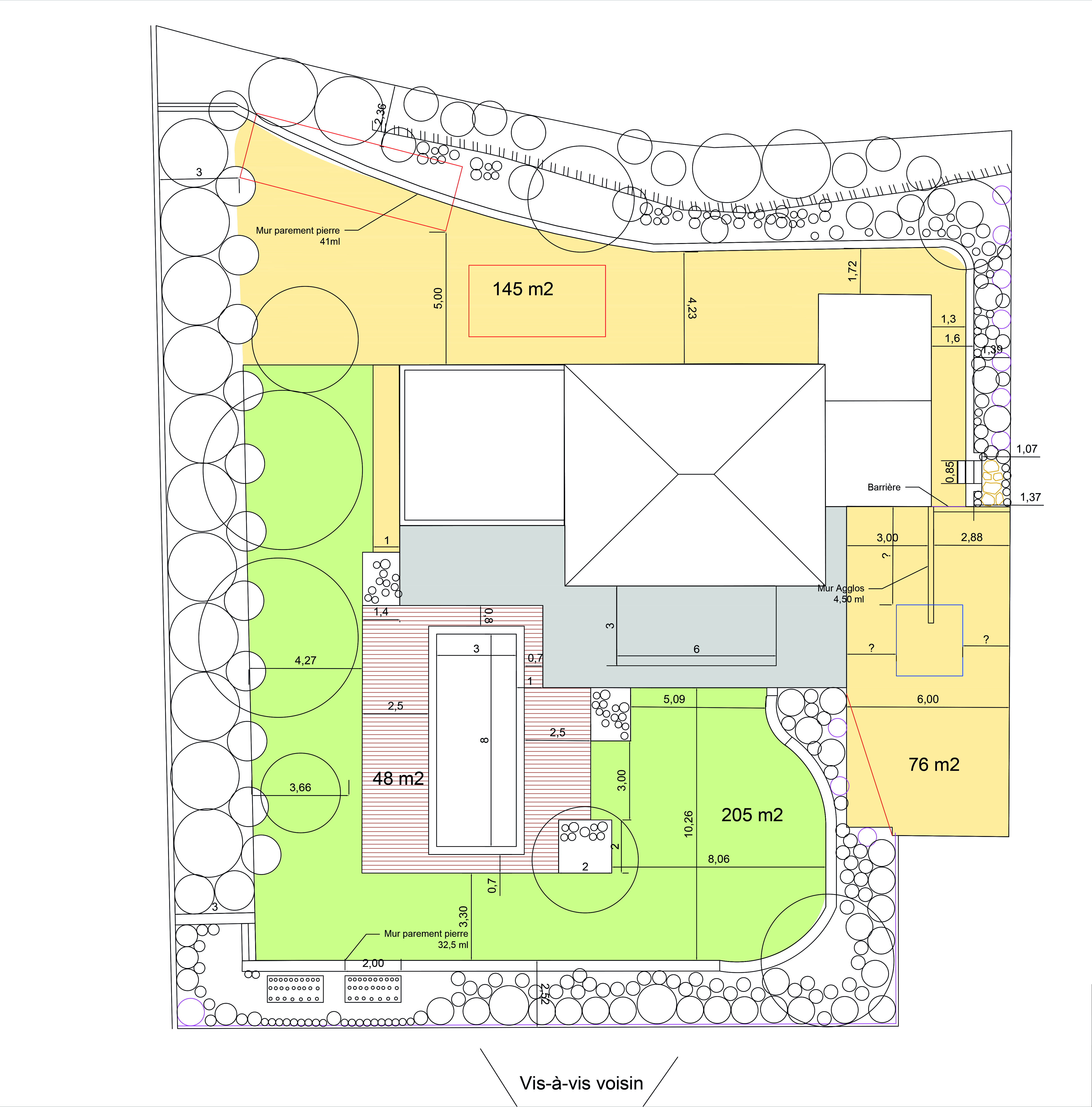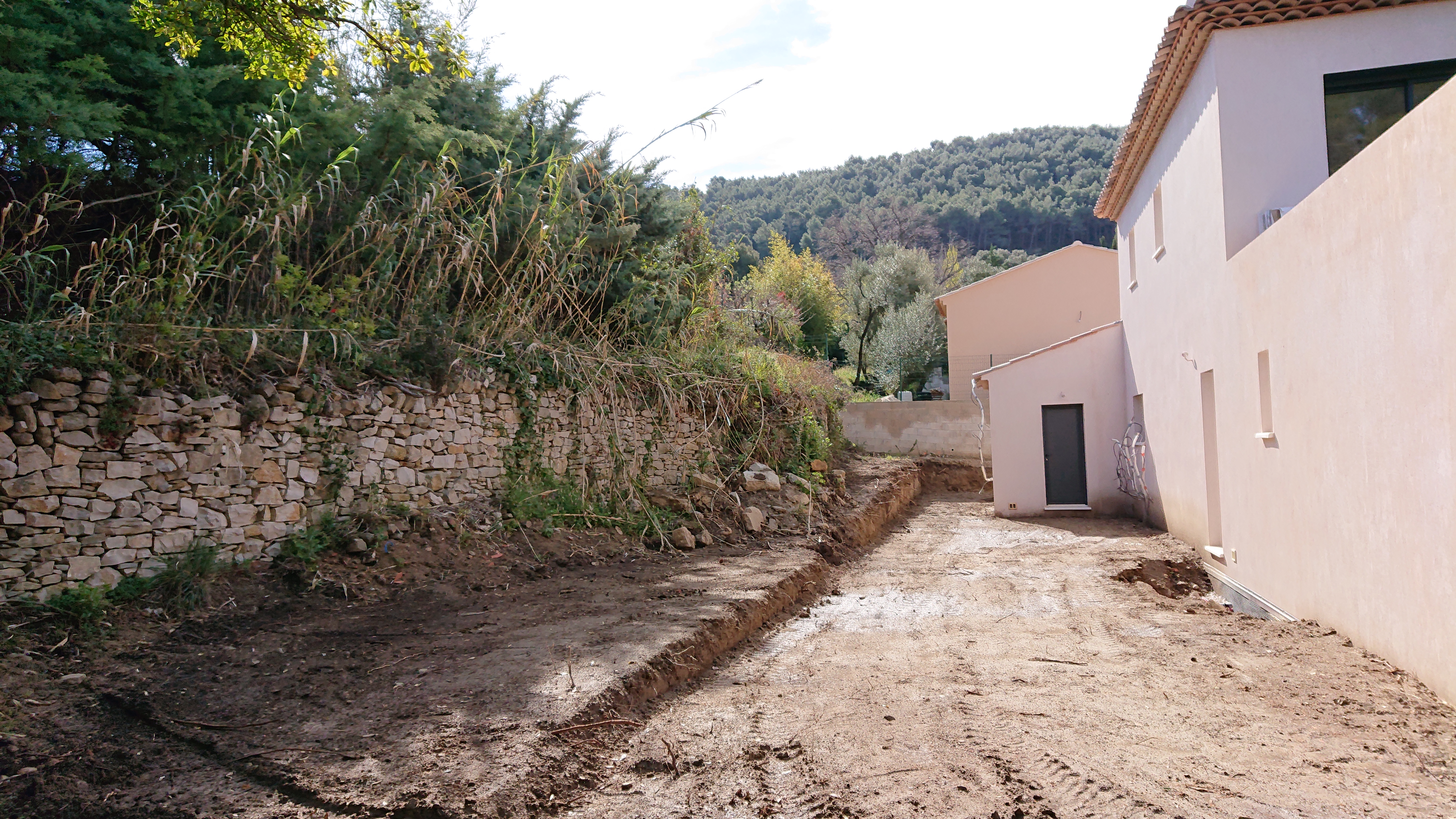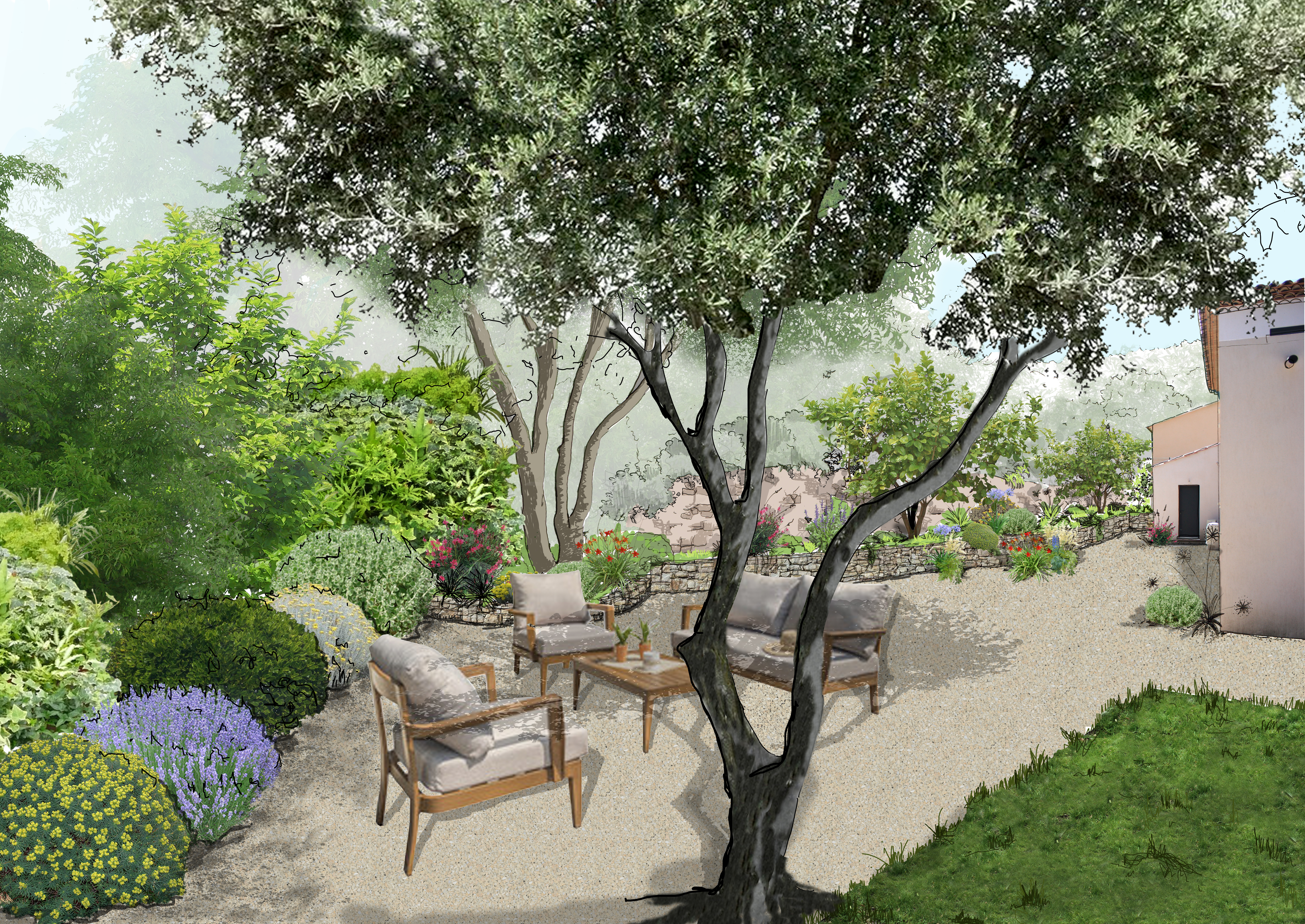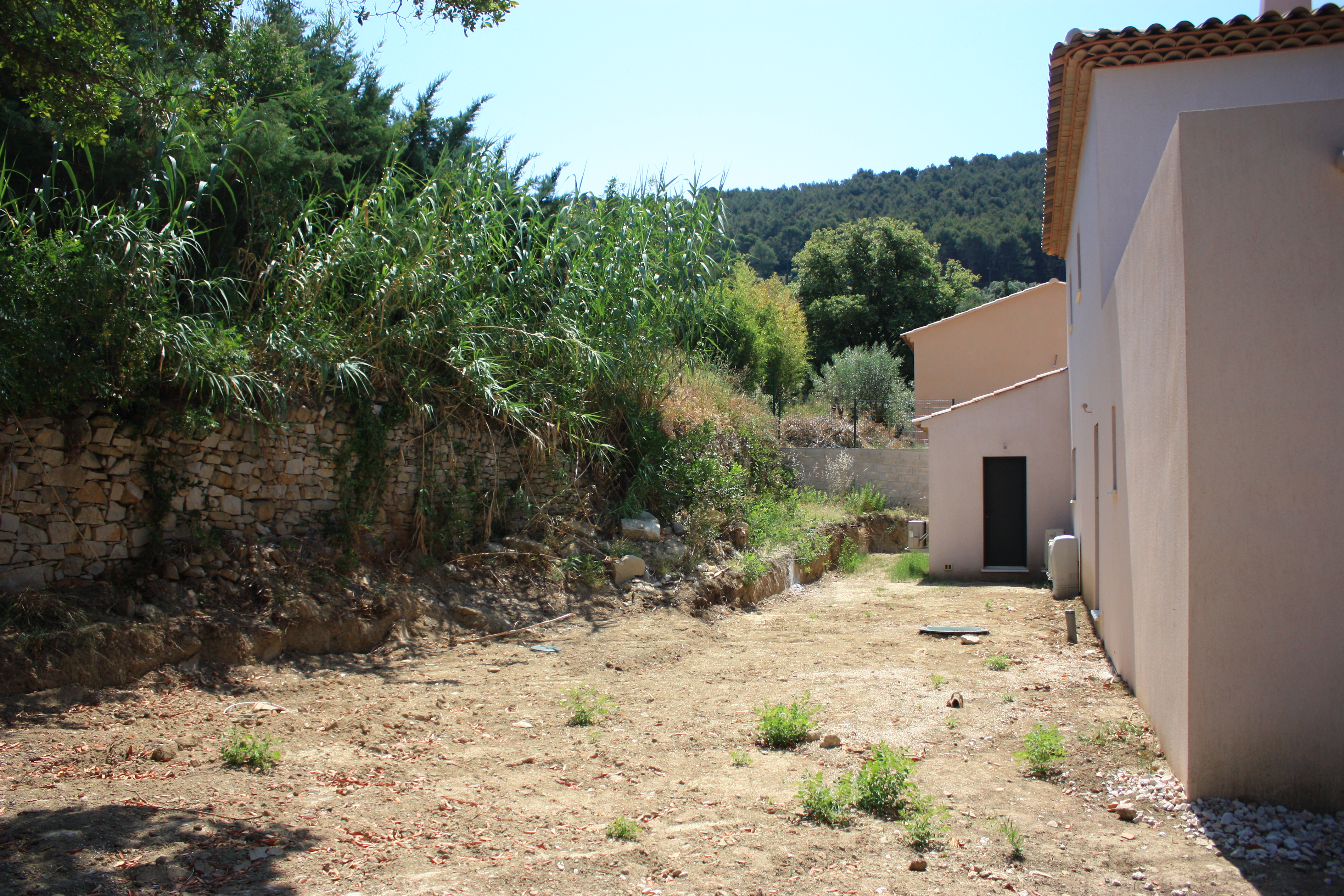 Ce projet de création concerne une parcelle de 1100m2 dans un quartier résidentiel de la commune de Ceyreste. Le terrain, en contrebas d’une ruelle, est de forme régulière et plane. Il s’agissait de proposer un jardin regroupant de nombreuses fonctions tout en maintenant un caractère végétal important. Entrée et stationnement des véhicules, terrasses, position de la piscine, espace de jeux pour les enfants, espace de culture pour le potager et espace de détente ombragé au Nord-Ouest de la maison, autant d’espaces de convivialité qu’il convenait d’imbriquer de manière cohérente pour conserver une facilité d’usage et d’entretien à la parcelle. Des végétaux méditerranéens, adaptés à la sécheresse composent pour la grande majorité les espaces de plantations où du paillage végétal vient couvrir et décorer les massifs. Une alternance de massifs arbustifs et arborescents, d’espaces en graviers avec géotextile et d’arbres de moyen développement permettent de limiter l’espace dédié à la pelouse, tout de même nécessaire pour permettre aux enfants de jouer sereinement. Les économies d’eau et d’entretien liées à la pelouse permettent de ne pas percevoir l’espace de jeux pour les enfants comme une charge de travail supplémentaire mais comme un espace clair et défini dans le jardin dont petits et grands profitent.