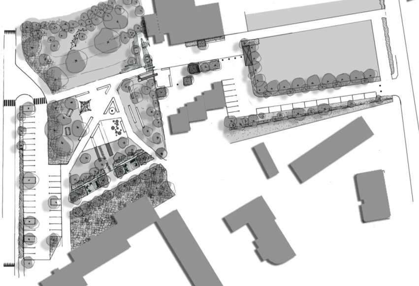 Plan masse phase AVP des 2 phases de projet : parc Nelson Mandela & parvis de l’école Robert Desnos