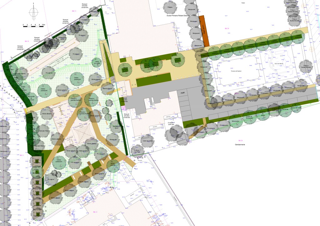 Plan masse phase PRO des 2 phases de projet : parc Nelson Mandela & parvis de l’école Robert Desnos