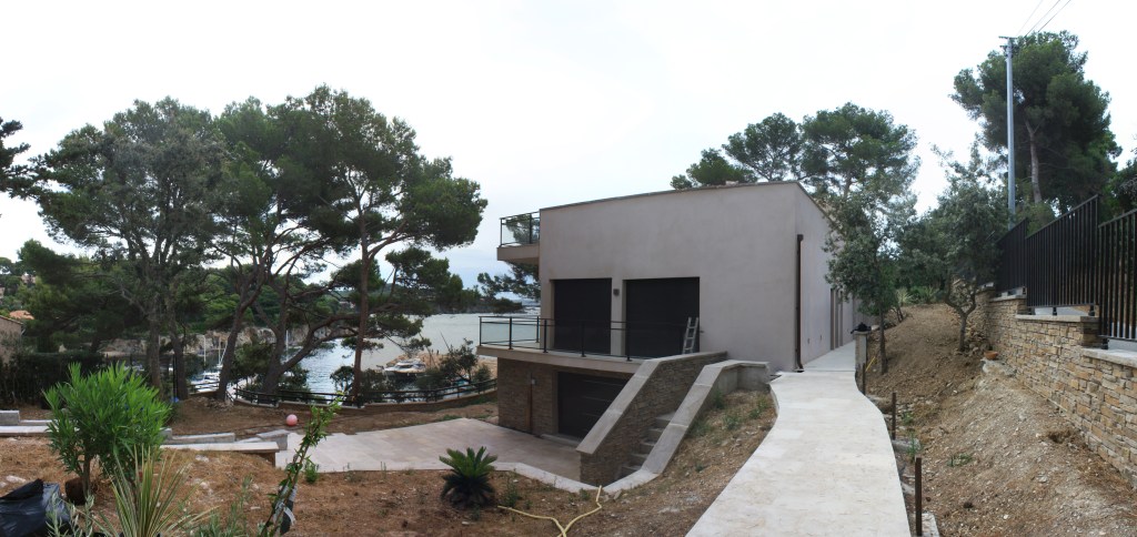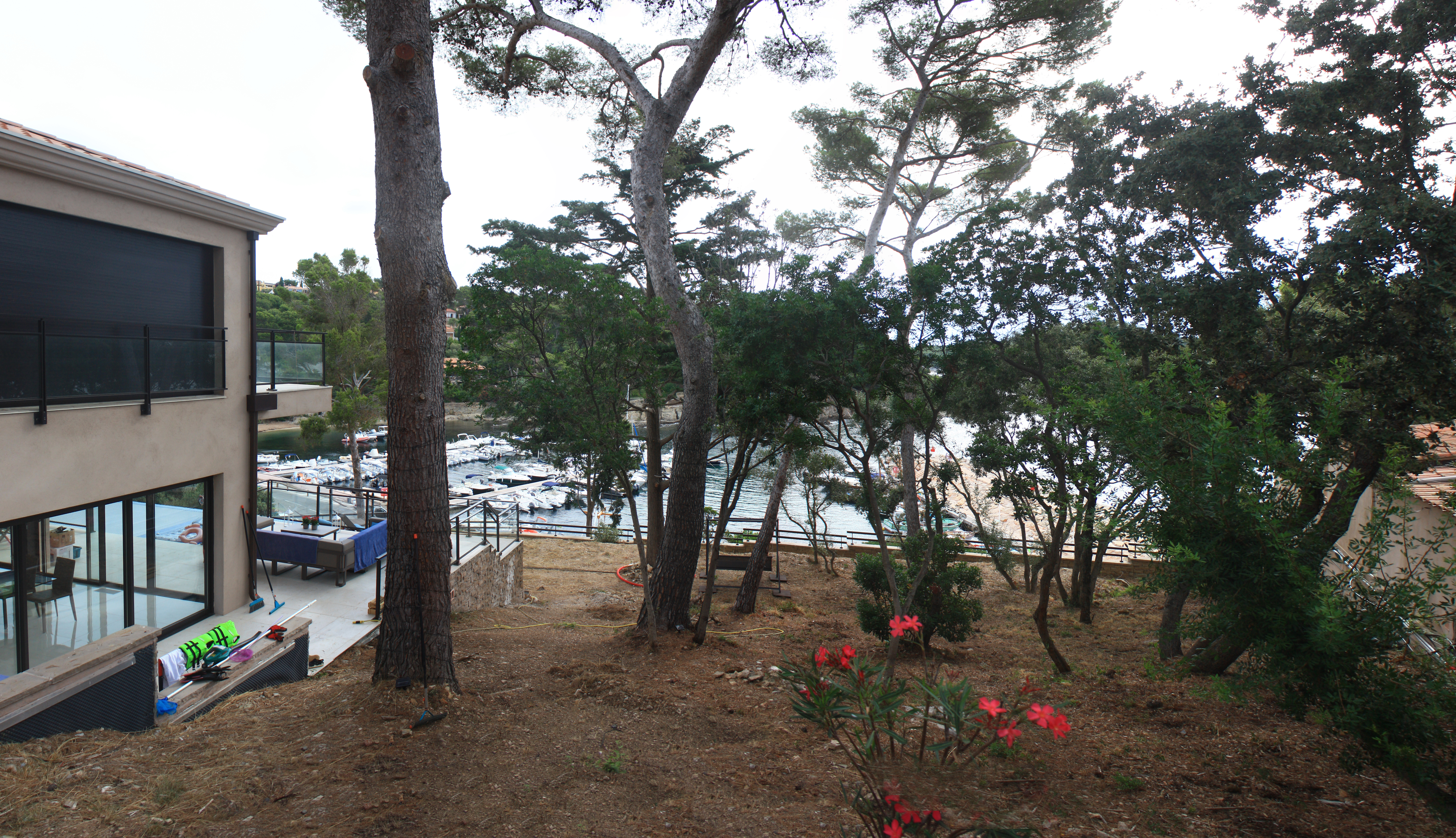 Le jardin, situé à l’extrême Sud de la commune de Hyères, au cœur de la presqu’île de Giens, offre des vues remarquables sur le port et la plage du Niel. Cette petite crique protégée bénéficie d’un cadre idyllique sur la méditerranée. La parcelle de projet est caractérisée par une topographie assez importante, élément à prendre en compte dans les futurs aménagements, mais induisant ainsi des vues plongeantes sur le port et l’anse du Niel en contrebas. Cette configuration du terrain confère au site un environnement unique entre terre et mer. L’accès à la maison et au jardin, terrassé en plateaux, s’effectue par un chemin en lacets où les Pins d’Alep dominent. Une conception paysagère contemporaine a été privilégiée et assumée afin de coller avec l’esprit de la villa, véritable balcon sur la mer.