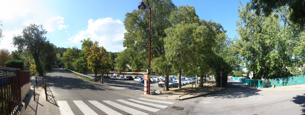 parking et abords de l’école attenant au Merlançon à réhabiliter et tourner vers le cours d’eau.