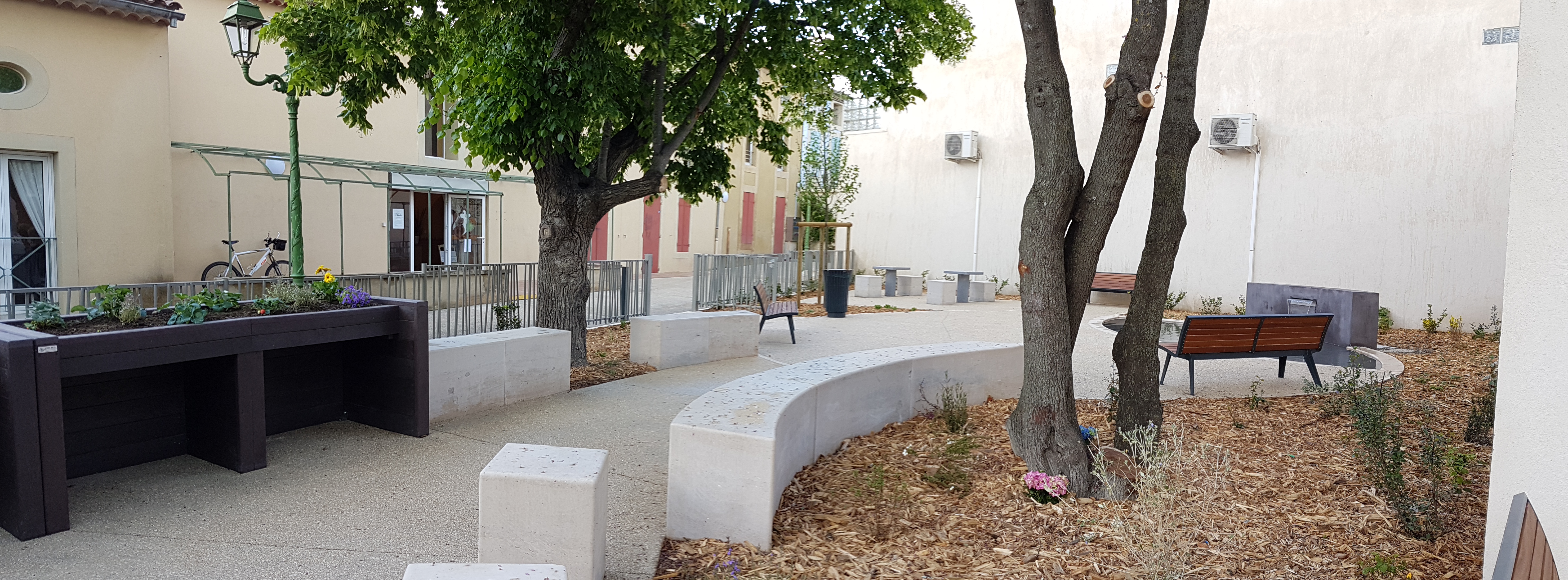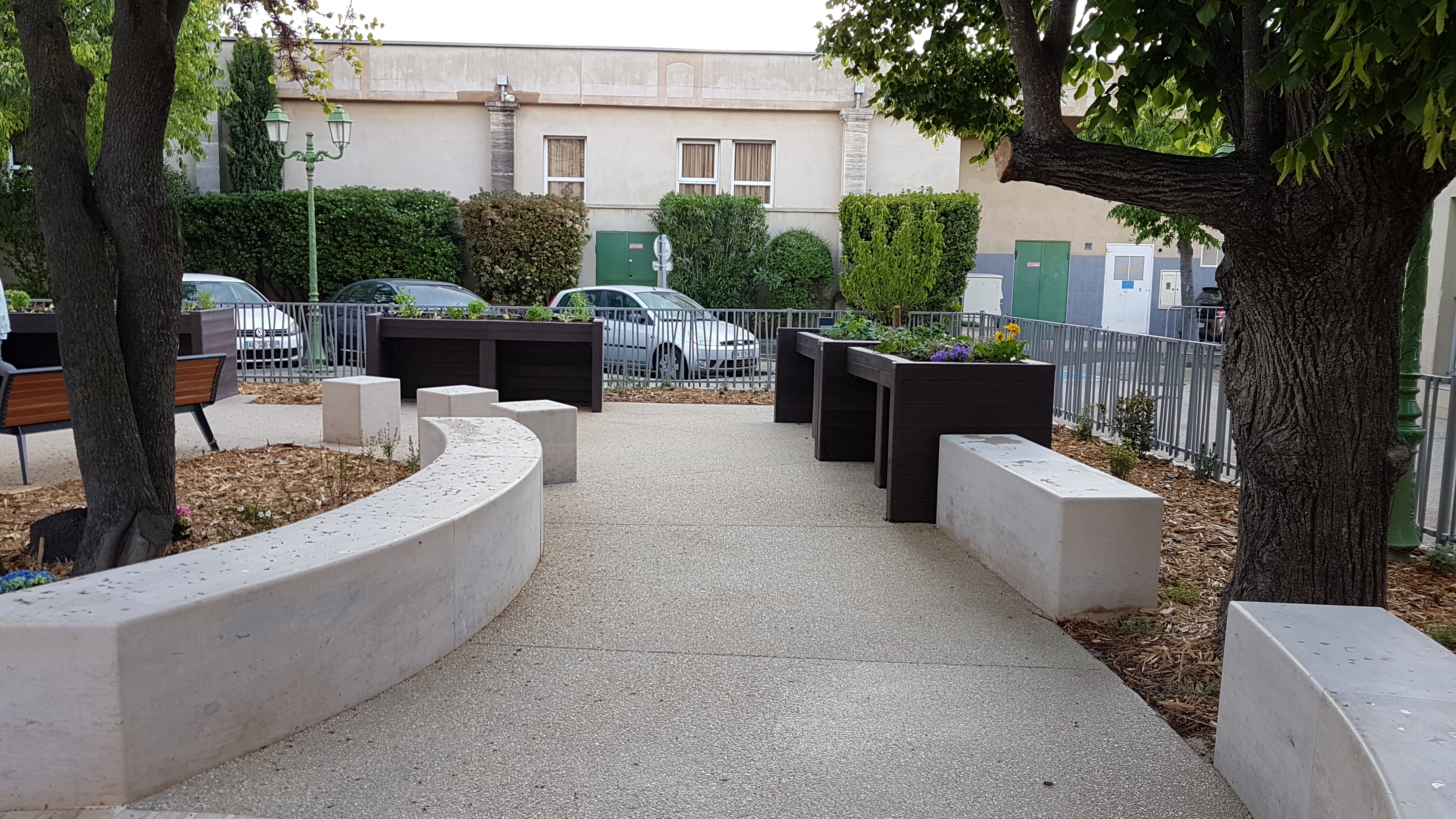 Le projet de réhabilitation de la place Raoul Coustet à Mallemort était l’occasion de penser deux objectifs : redonner du cachet et un usage à un espace marginal du centre tout en redorant l’image du végétal en ville.