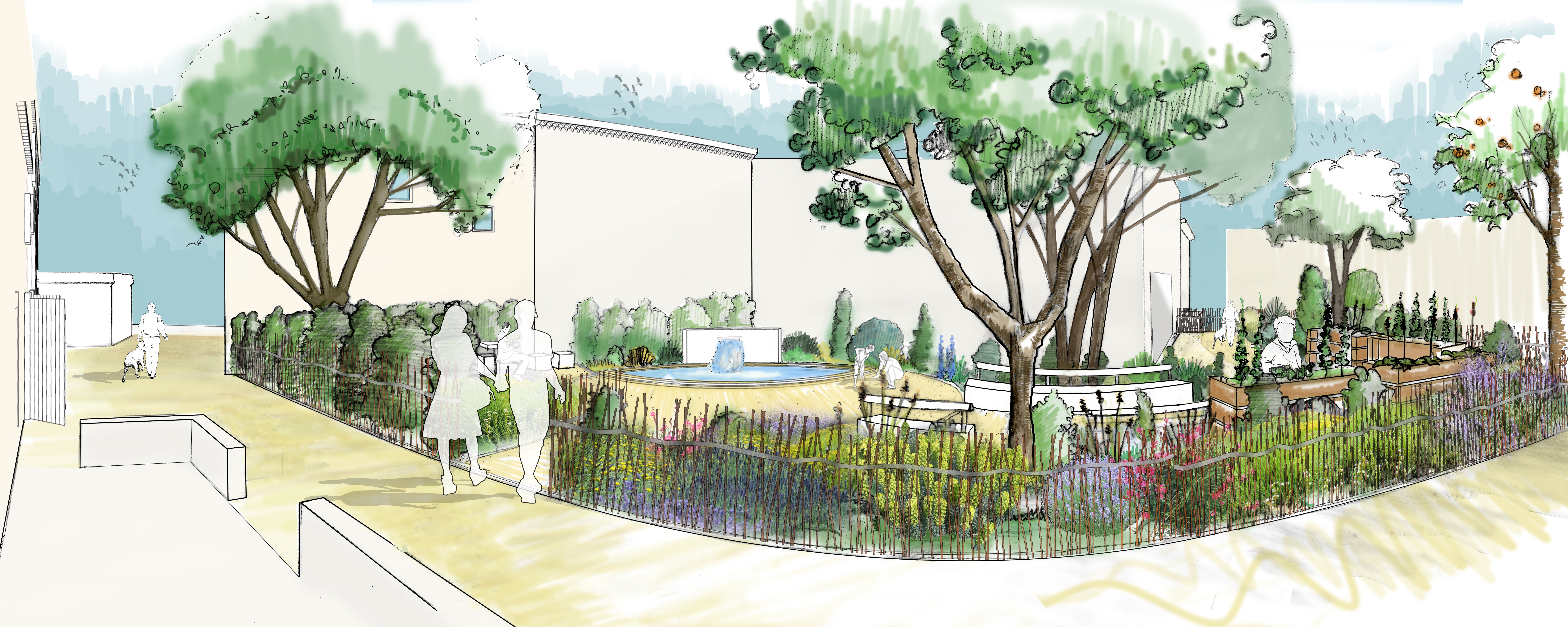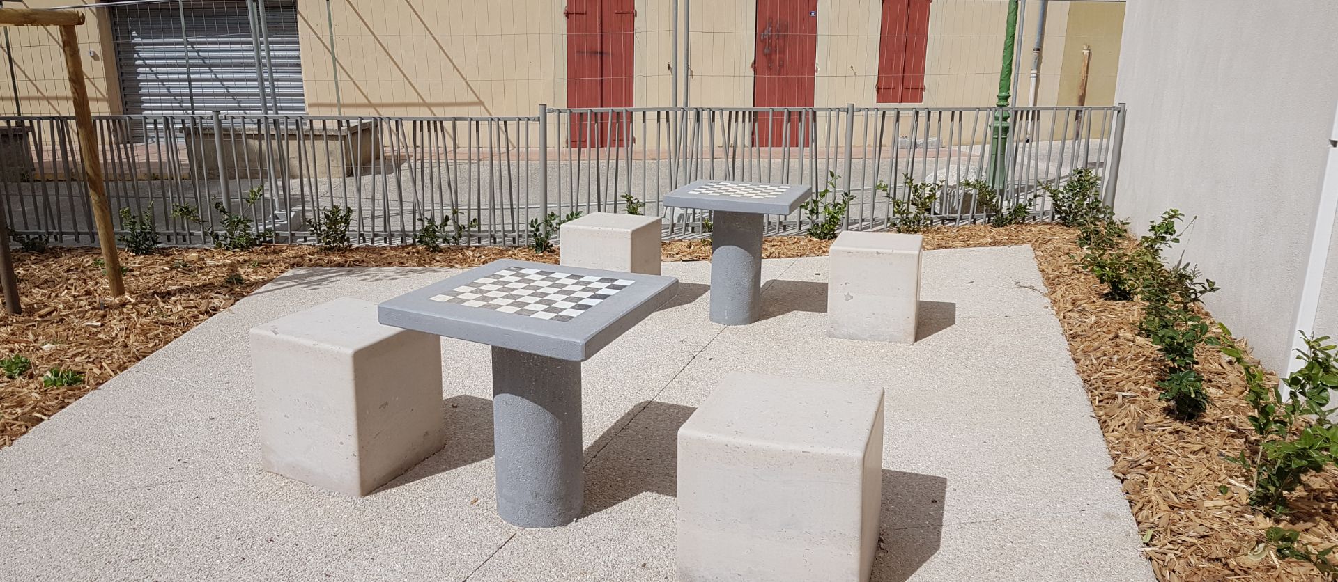 La stratégie végétale consistait à conserver les sujets âgés afin de bénéficier de leur ombre à l’été tout en ajoutant du mobilier, des structures de culture urbaine modernes et des massifs de vivaces dont la floraison s’échelonnerait tout au long de l’année . Des jardinières hautes accompagnent ainsi le cheminement principal qui traverse la placette en offrant des espaces de cultures adaptés aux élèves des écoles alentour et à la maison de retraite située en face. Du mobilier adapté à la culture hors-sol et aux pratiques de jardin en ville, des assises originales et des jeux de dames et d’échecs sont disposés à proximité de la fontaine et de massifs de plantations, éléments centraux de cette place végétalisée. Les revêtements de sol, entièrement repris, englobent les deux rues annexes à la placette et confortent plus largement cet espace public du centre-ville. Un lieu retrouvé et redoré aussi bien pour les habitants que pour les touristes à deux pas de la rue commerçante et des différents équipements de la commune.