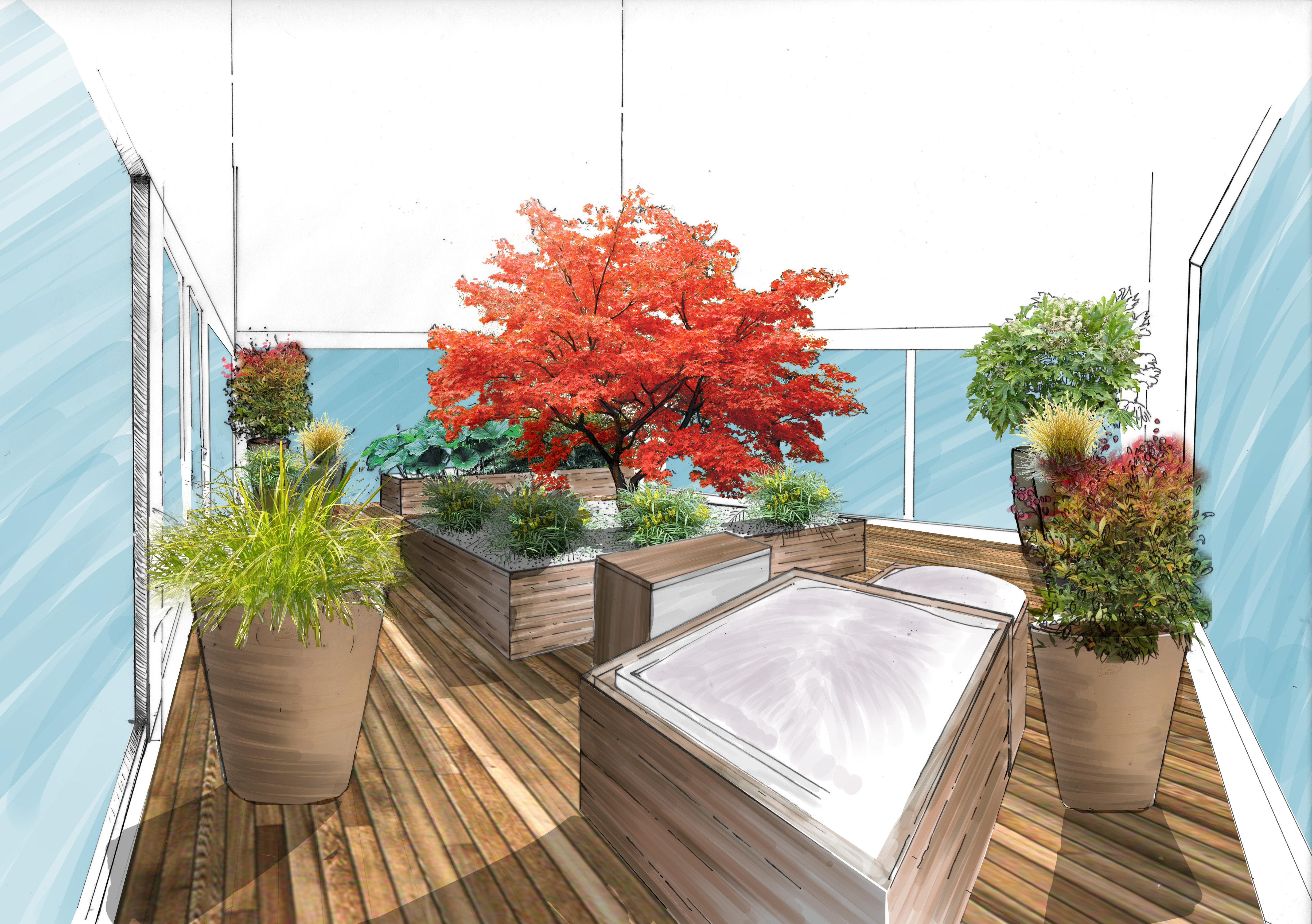 Le projet de réhabilitation des patios de la préfecture du Var était l’occasion pour nous de proposer une végétation exotique rompant avec les projets de végétation méditerranéenne adaptée au contexte de sécheresse que nous avons l’habitude de traiter. En effet, les patios, largement ombragés, sont totalement déconnectés du niveau du sol (1er étage). Les différentes plantations, anciennes et à venir, sont donc entièrement artificielles, de même pour les bacs, pots et massifs : l’ensemble du substrat a été rapporté. Il était par ailleurs impossible d’imperméabiliser les patios pour les couvrir de terre, seuls la surélévation des plantations par des bacs et pots était envisageable.
